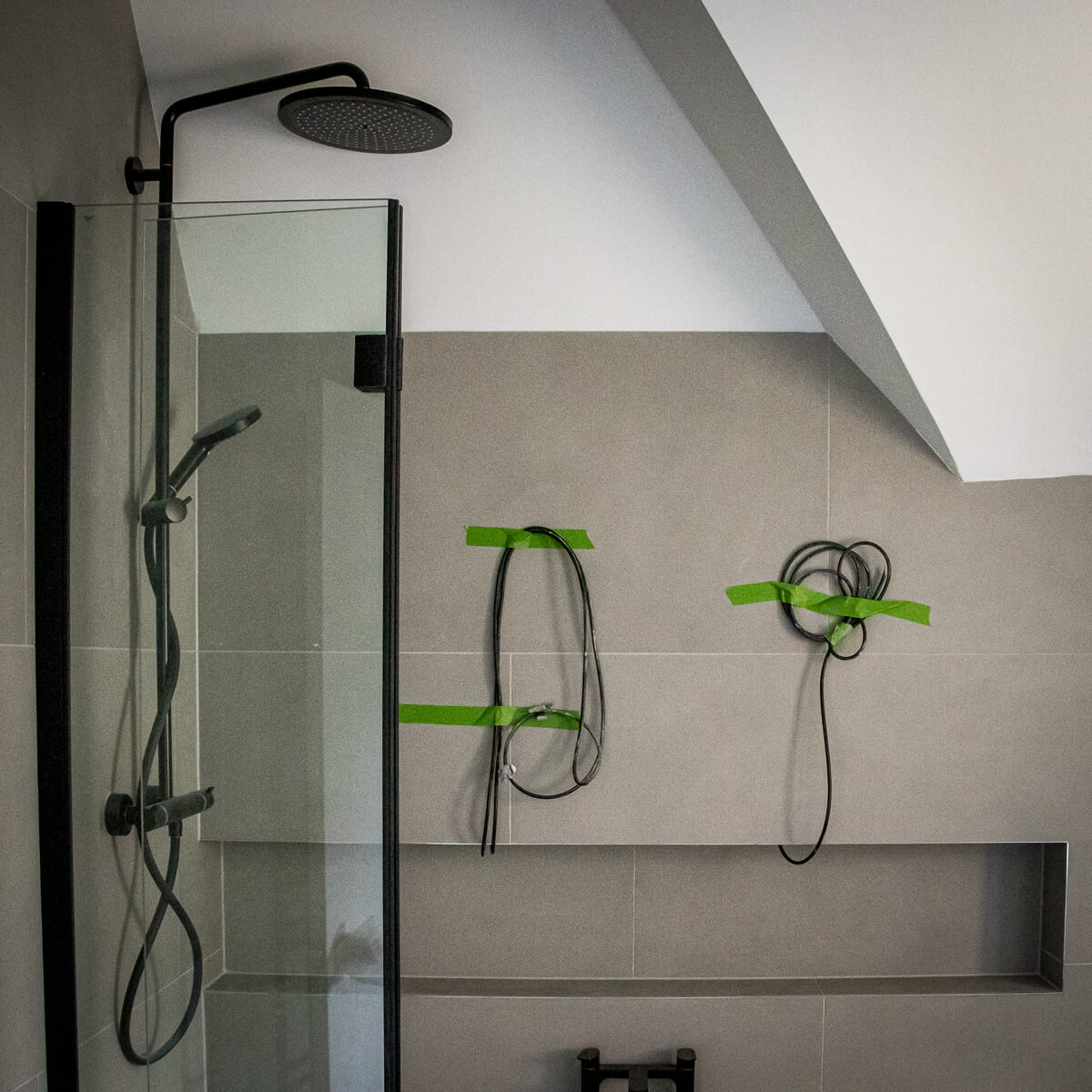 Elsewhere, services are being finalised, with the electrical team completing fittings and controls across the property. Bathrooms are now tiled and finished, while the decorating team are working room by room to bring a clean, polished look to every space.