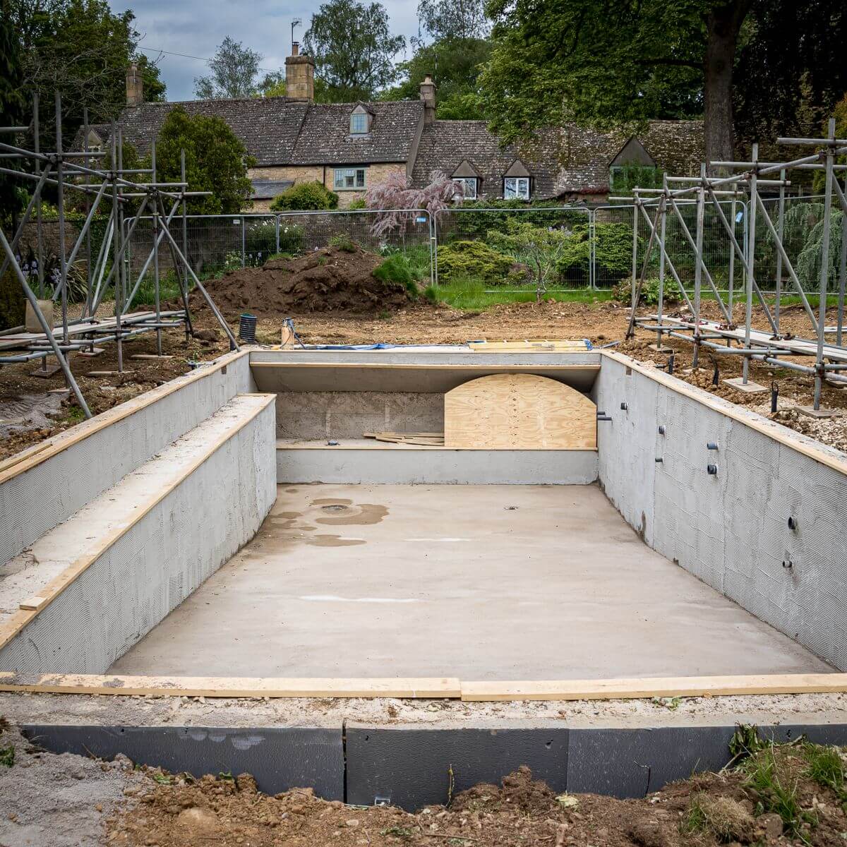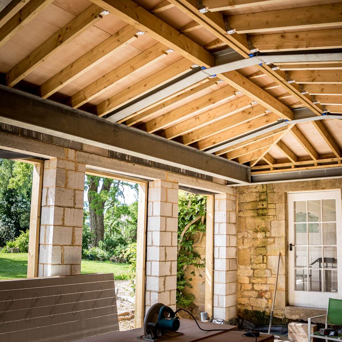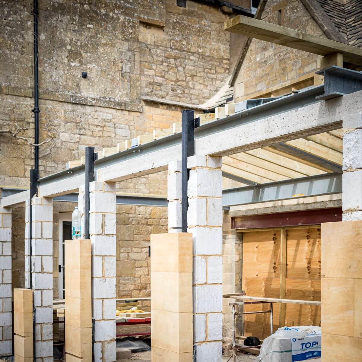 One of the centrepieces of the renovation is the bespoke single-storey kitchen extension: a glass-fronted, Cotswold stone structure filled with light and warmth. Custom cabinetry, marble worktops, and slim-framed glazing come together to create a space that’s both contemporary and timeless, allowing modern family life to unfold comfortably within the context of a historic building.
