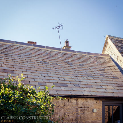 It’s oversimplifying what was a difficult task but essentially the existing stone tiles were removed, cleaned and reshaped by hand then refitted to the roof. This was a long and arduous task for our roofing team so well done to them.