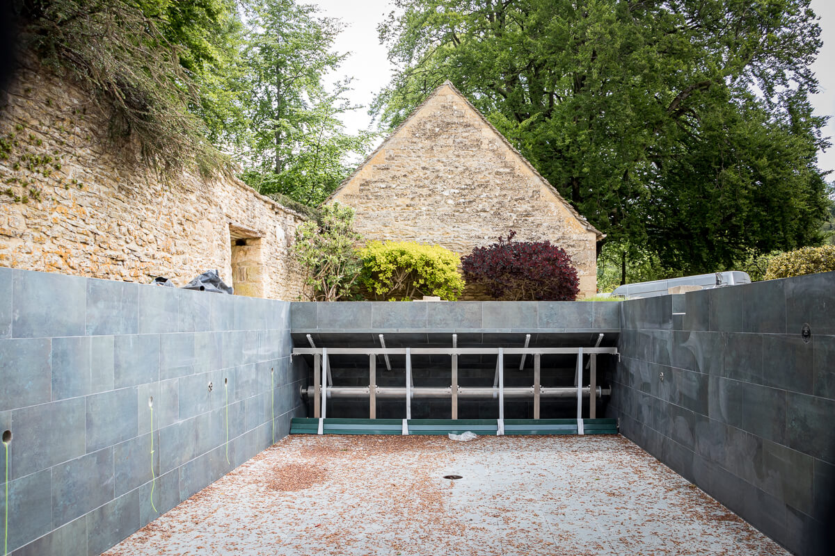 The bespoke kitchen is now being fitted, with solid cabinetry and integrated storage taking shape around the heart of the home. Our joiners are carefully scribing panels into the historic stonework to ensure a flawless fit, blending traditional craftsmanship with modern precision.