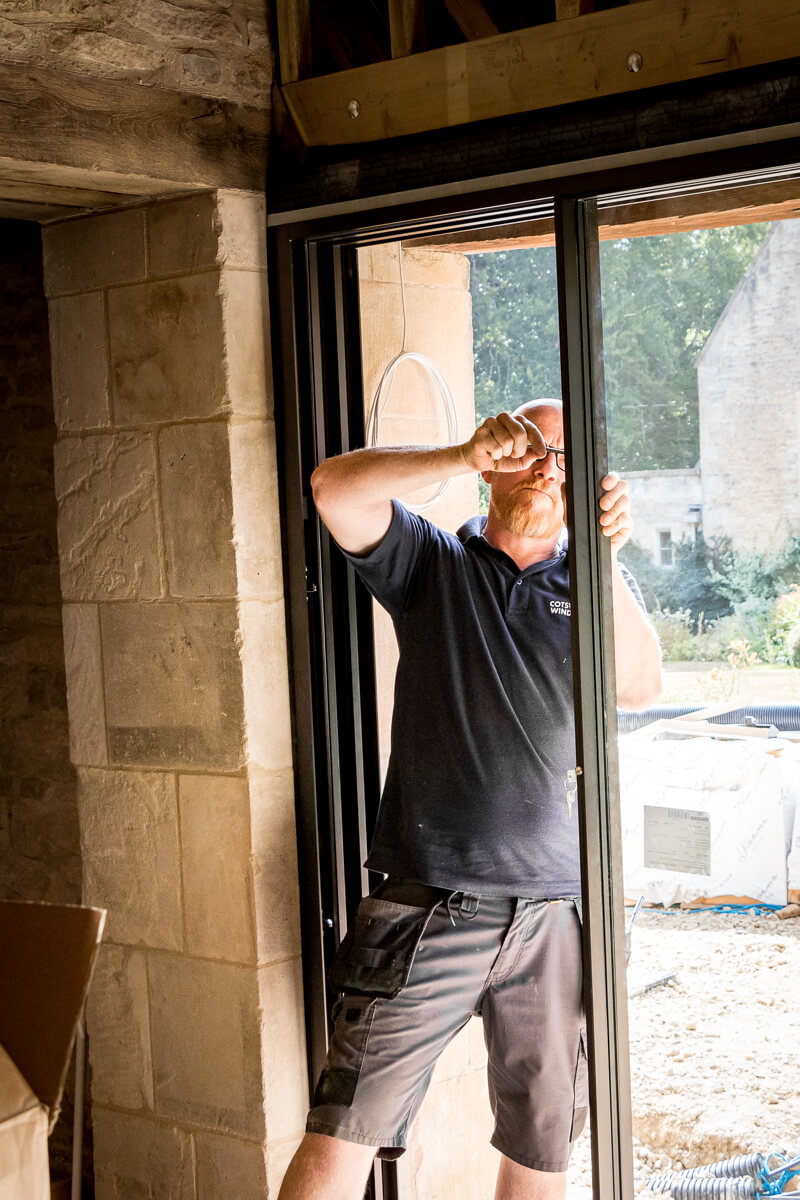 Inside the annex, high-end electrical fittings are being installed, with aged brass conduits and precision junction boxes complementing the rustic Cotswold stone. These details strike the perfect balance between heritage charm and modern luxury.