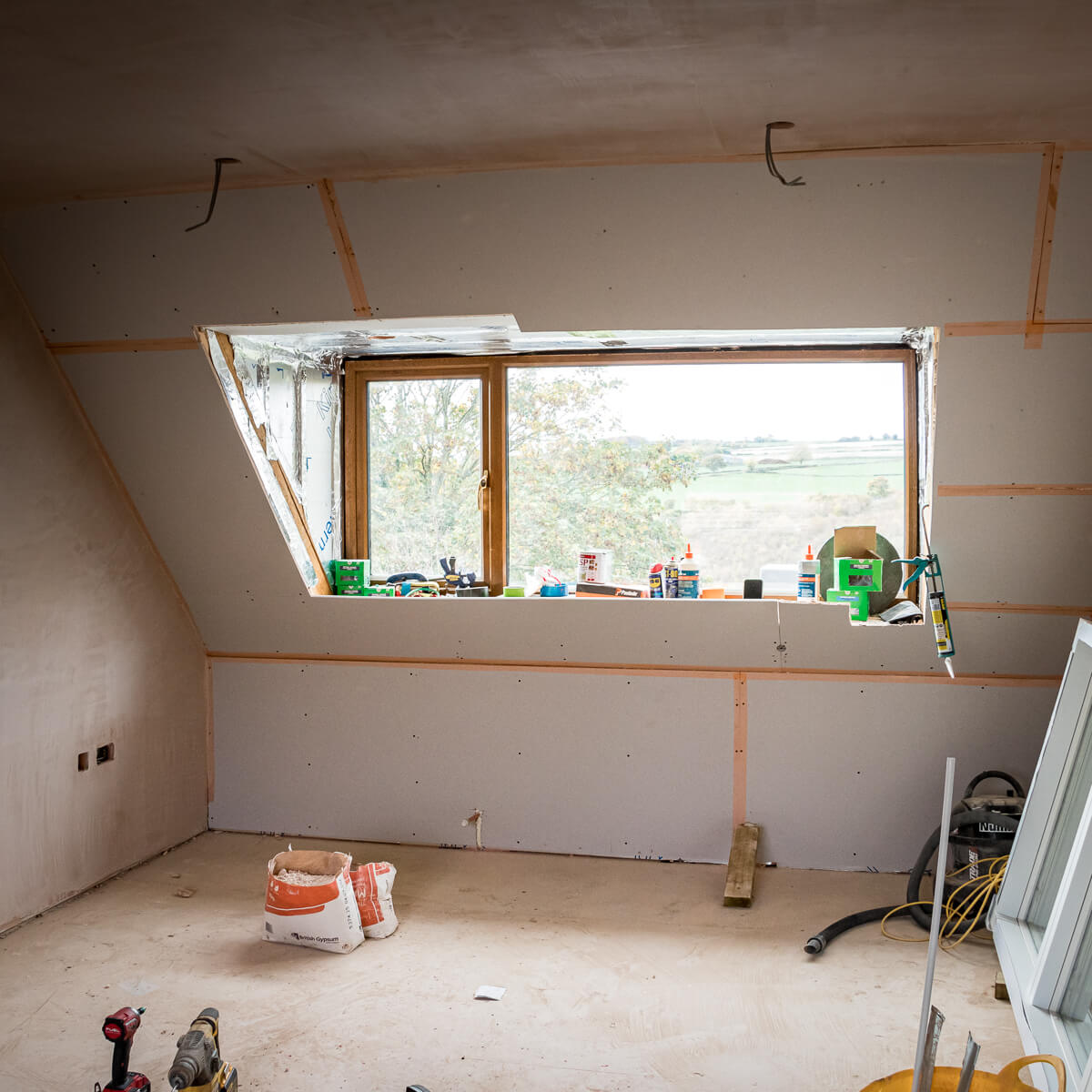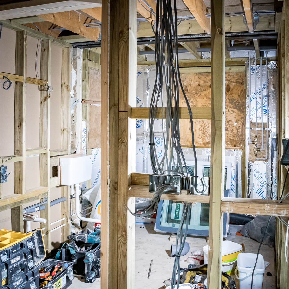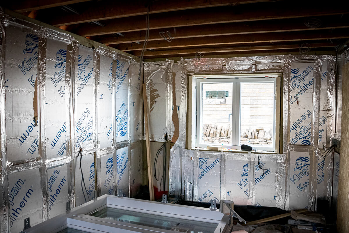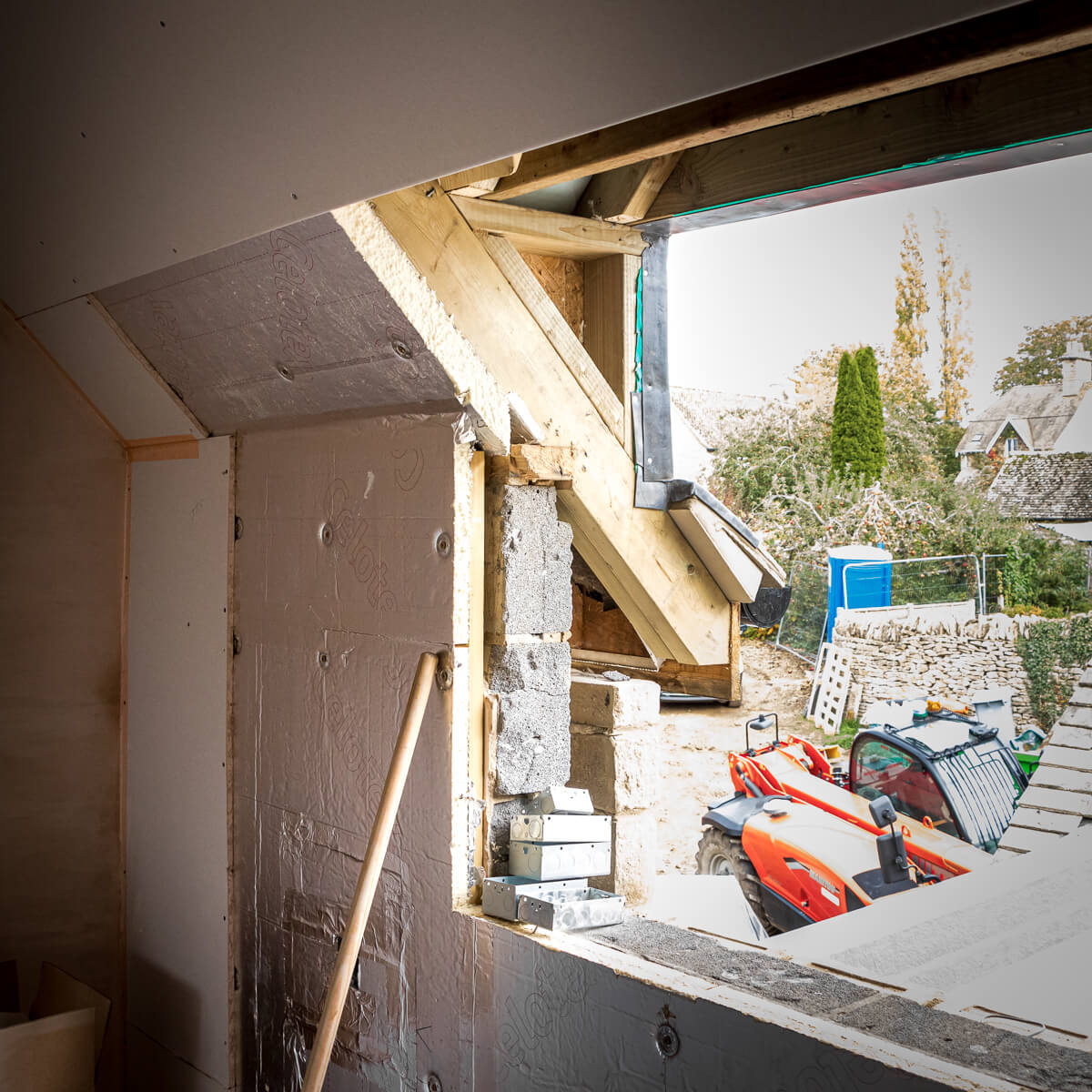 Internally, the new floor plan is becoming tangible as stud walls are erected to define the redefined living spaces. We are currently constructing a new walk-in shower suite and separating the primary ground-floor areas to improve the home’s flow. Insulation is also being meticulously fitted around new window openings, a critical detail for the thermal efficiency and comfort of this contemporary renovation.