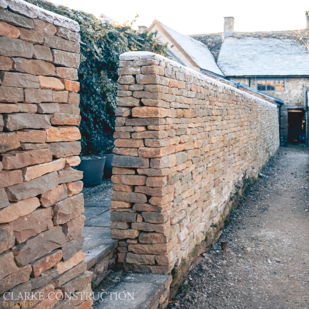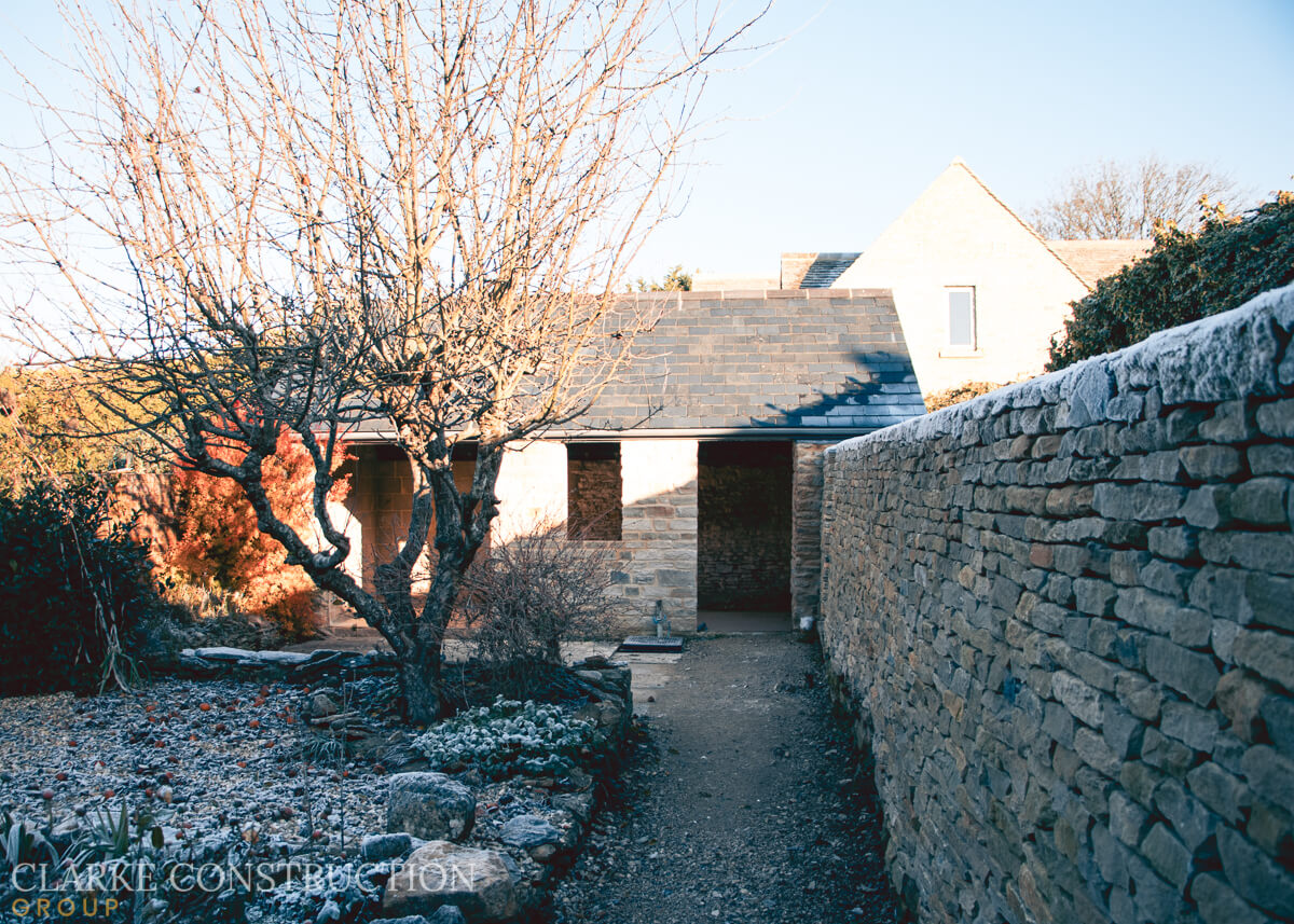The external shell of this garden annex is complete and ready for the next stage of development that will start in the new year. The dry stone wall that marks the boundary line and runs the length of the client’s garden has also been completed.