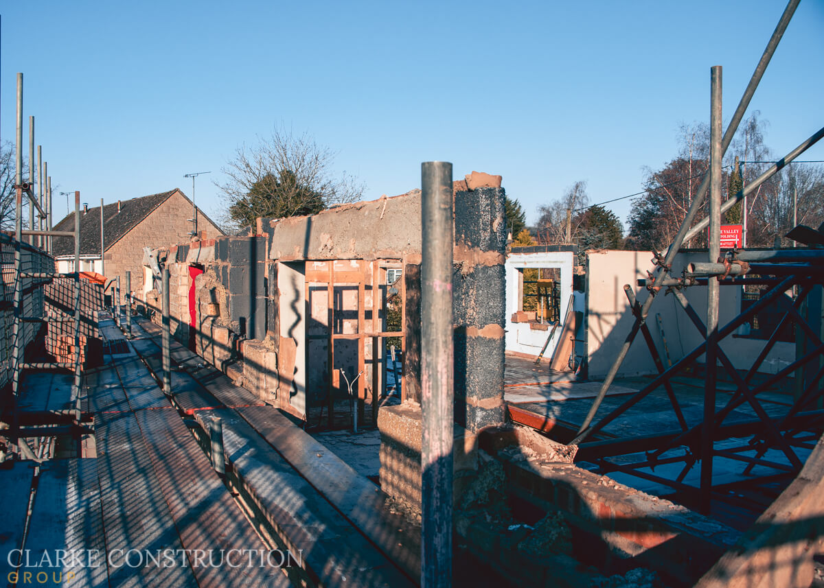 Large scale development of this site is well under way. The existing building has mostly been demolished, with just a partial outer shell remaining. A new steel framed opening has been created in the side of the home to lead to a new extension - the foundations of which are currently being created. This project is very much in the early stages with an exciting few months ahead.