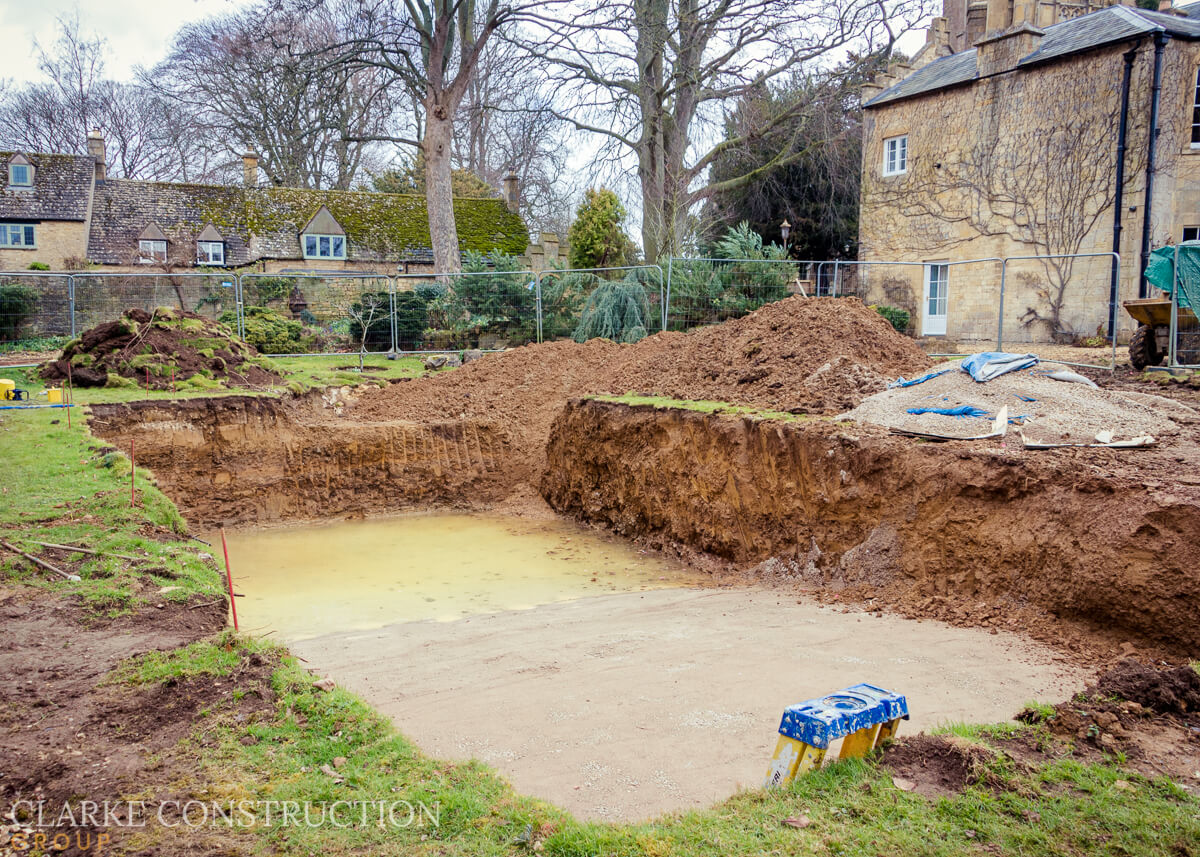 Currently, we are in the process of pumping out the hole, preparing the site for the pool's construction. Stay tuned!