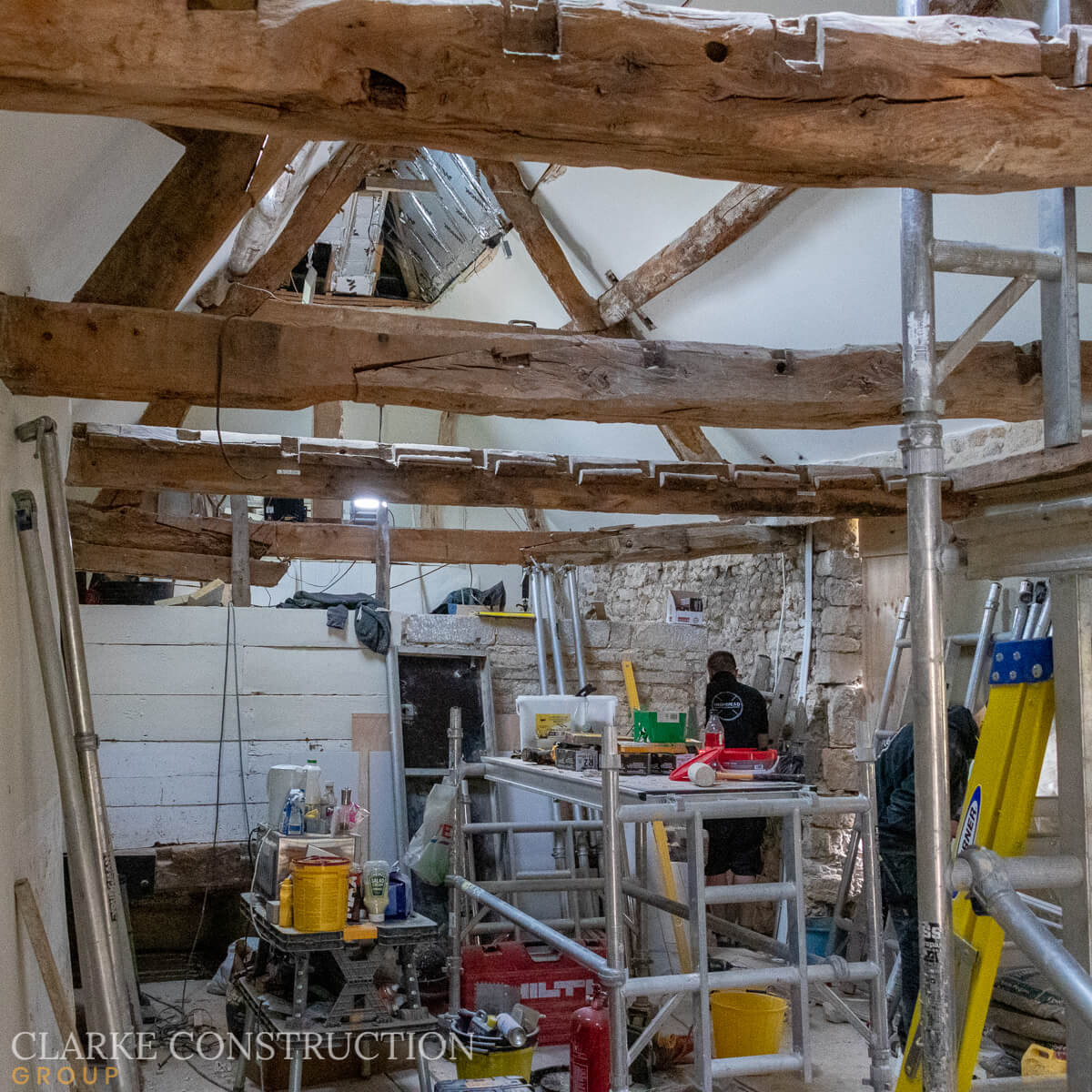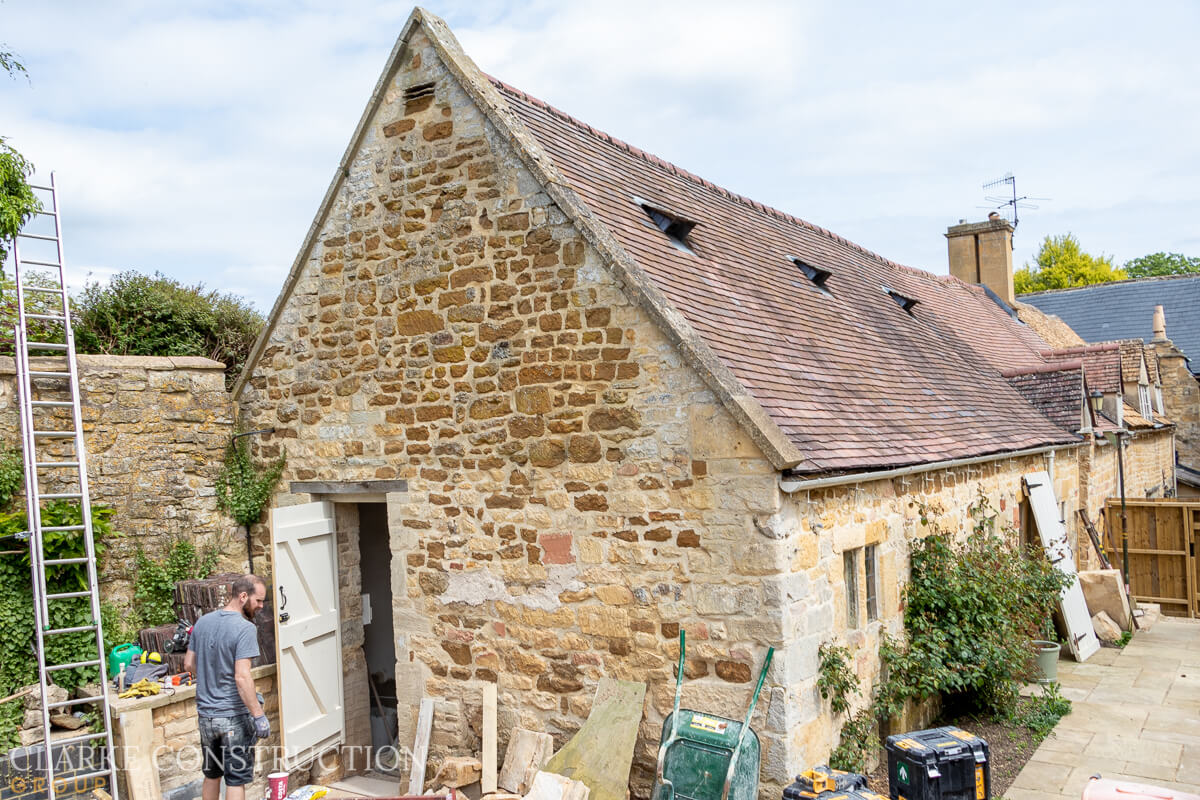 Working diligently on the roof, the team are replacing any damaged tiles to ensure the structure remains weatherproof for many years to come. Meanwhile, plaster boarding and plastering work are well underway inside, rejuvenating the walls and giving them a fresh appearance.