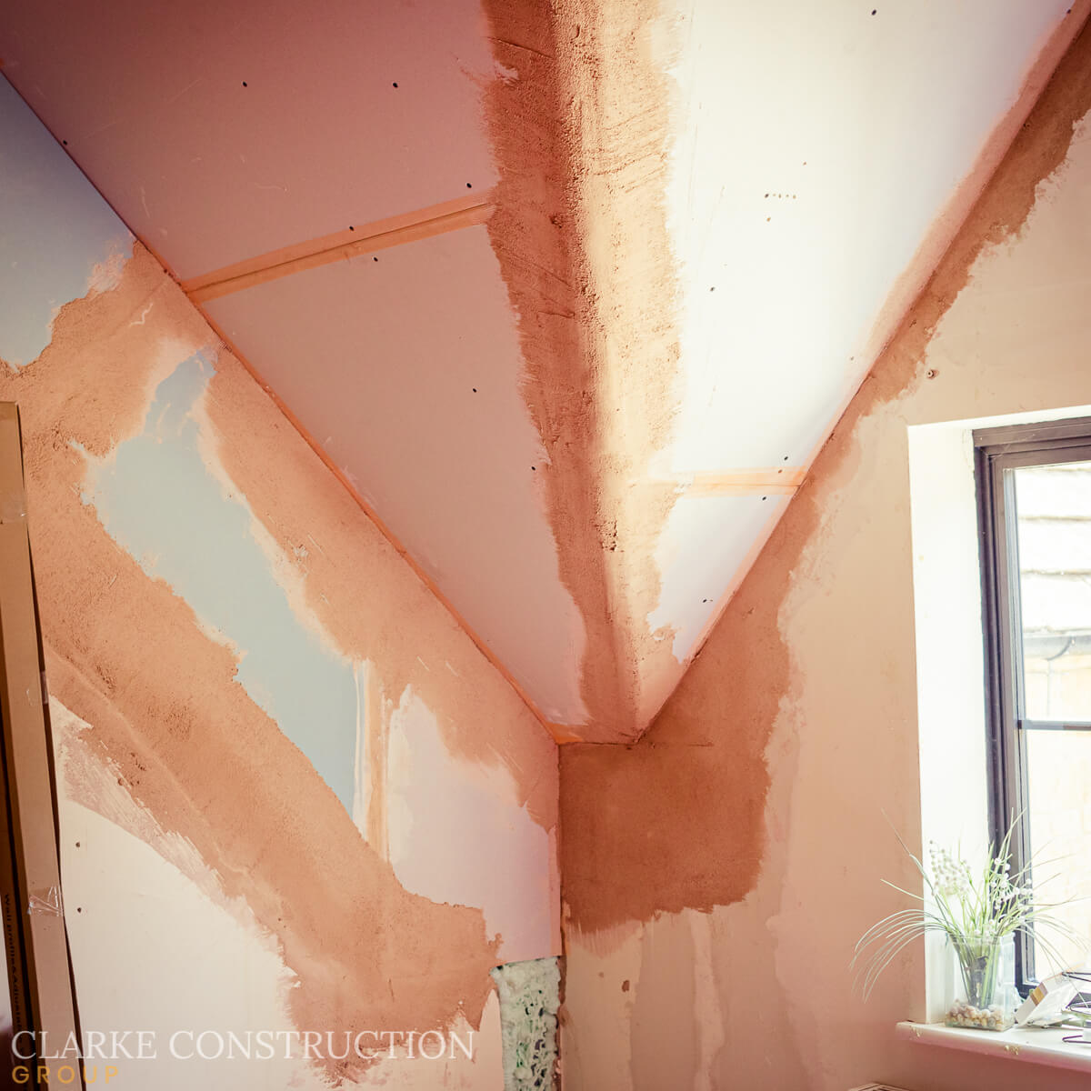 The house is buzzing with progress as plastering continues throughout various areas, seamlessly transforming each space. In one of the en-suites, tiling is underway, infusing the space with timeless appeal. The new entrance to the home has been thoughtfully crafted, with the front door taking centre stage, surrounded by the exquisite beauty of Cotswold stone.