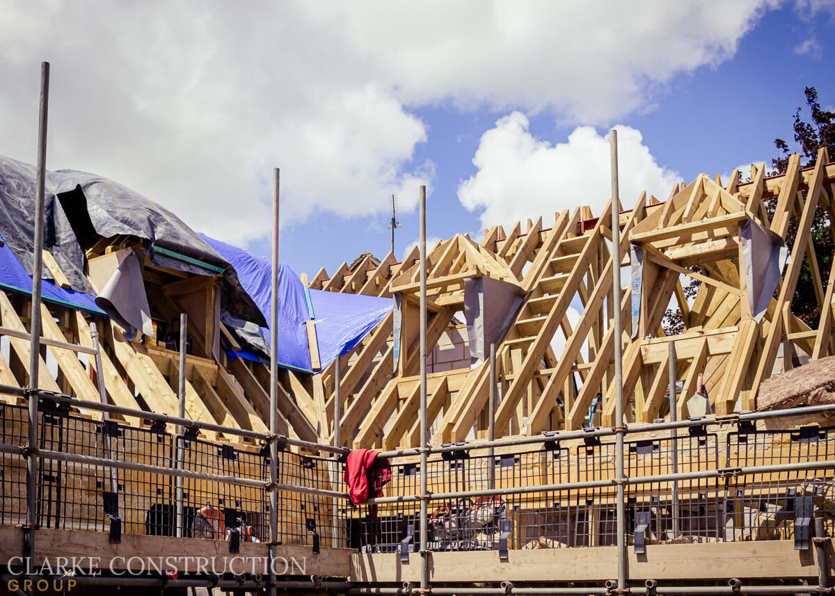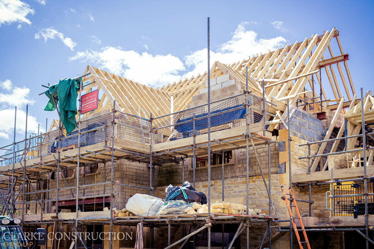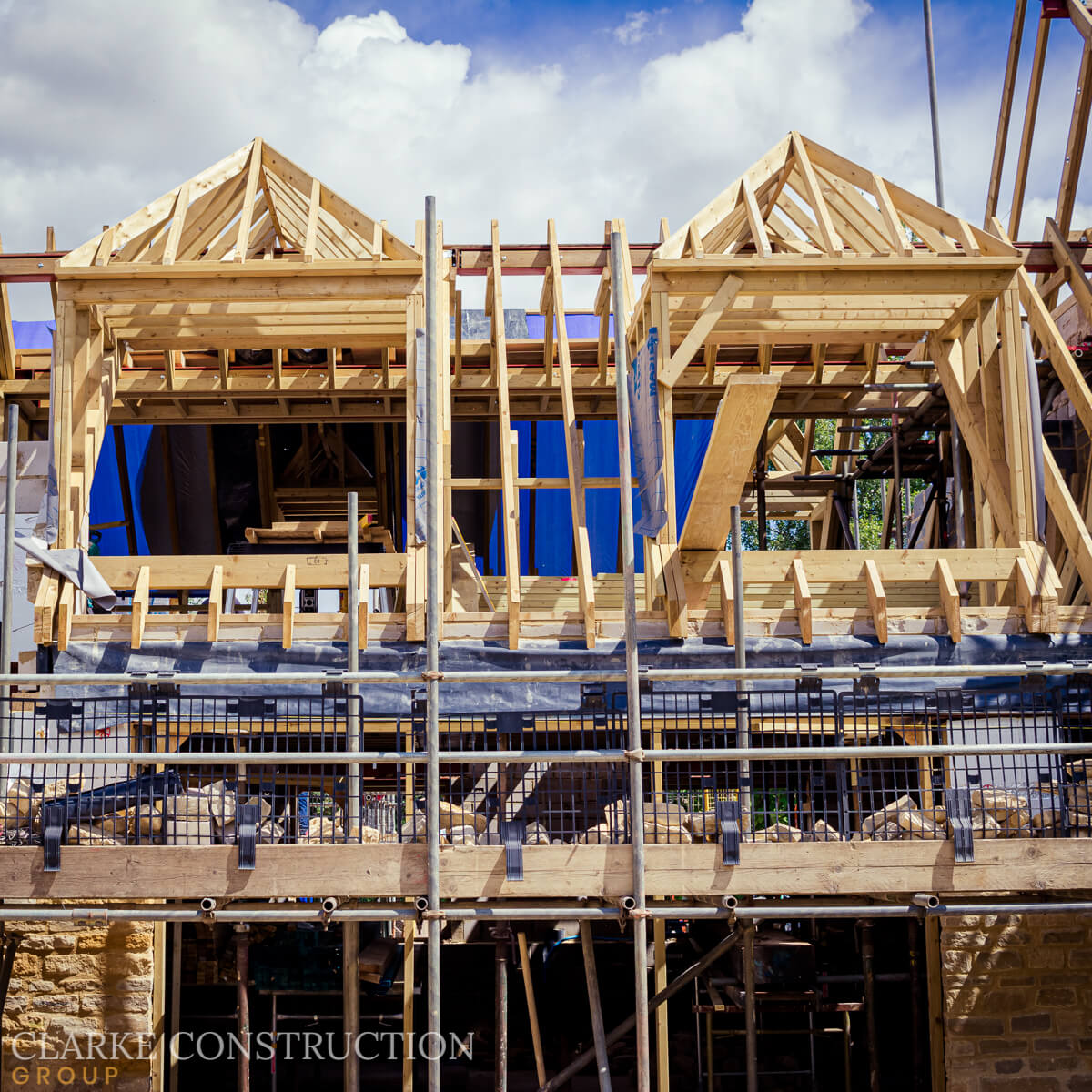 The Cotswold stone walls rise majestically, showcasing the timeless charm of this region's heritage. Simultaneously, the team creates an extensive timber frame, a meticulous composition that defines the home's internal walls, upper floors, and roof. In this masterpiece of engineering and artistry, intricate dormer window frames add a touch of architectural brilliance.