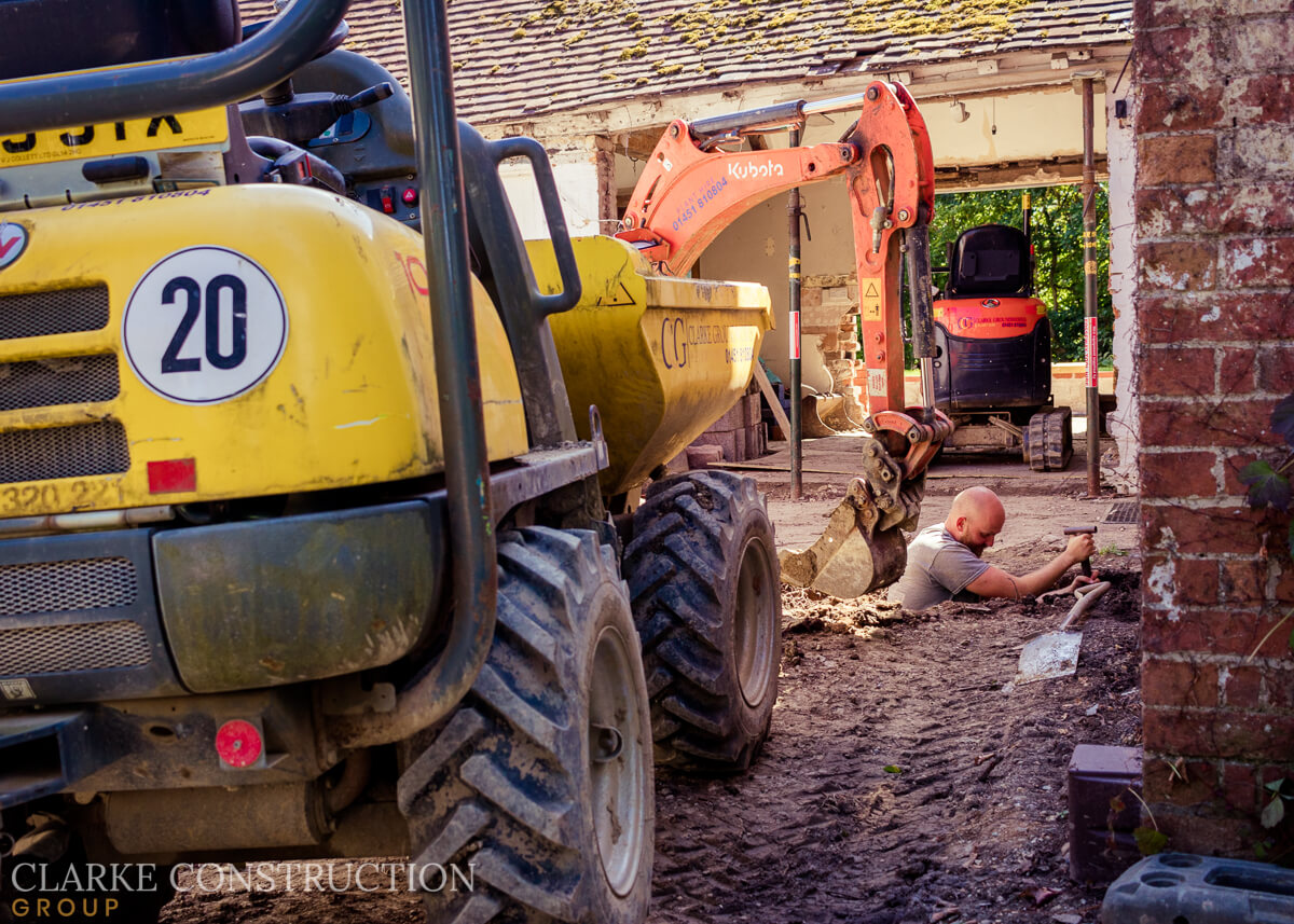 In harmony with these transformations, the extension's foundations are emerging from the earth like the promise of a new era. Soon, it will stand tall as the new main entrance. This extension will weave together the threads of the past and present. Notably, it will join forces with existing structures, acting as a bridge to the meticulously restored outbuildings - destined to become a charming boot room.