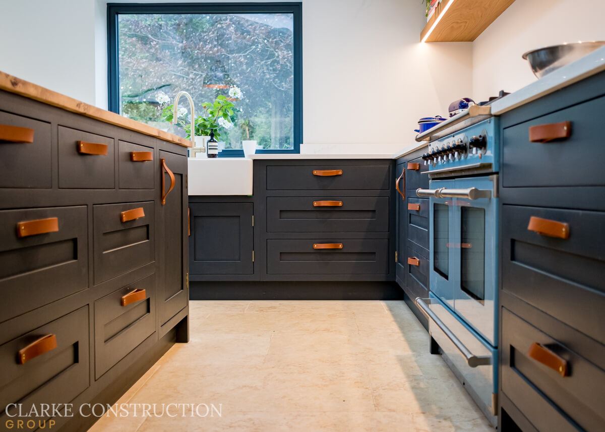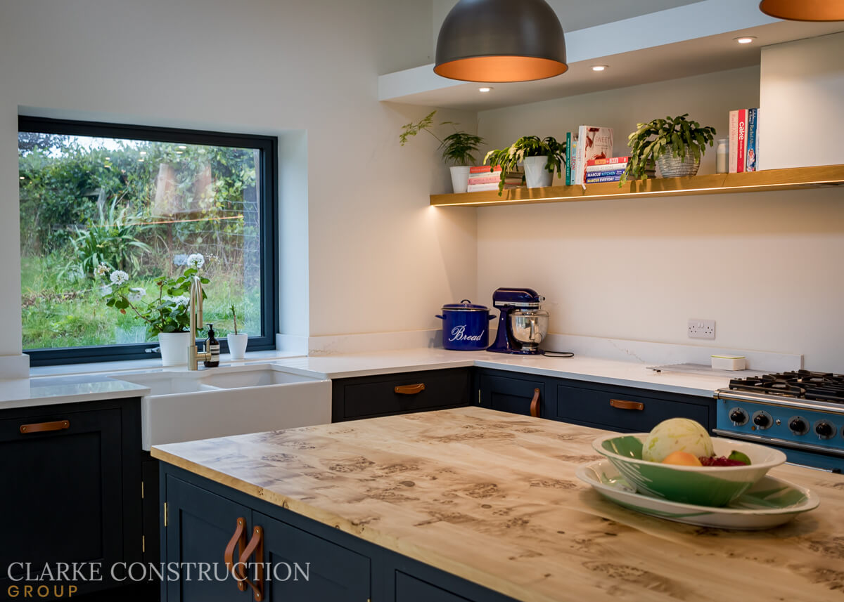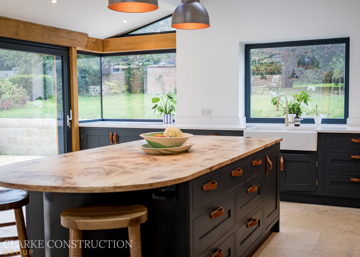 Clean, contemporary design lines are the hallmark of this kitchen. They create a sense of spaciousness, enhancing the overall aesthetics of the room. The large windows, which flood the space with natural light, offer breathtaking views across the picturesque Warwickshire countryside. It's a harmonious blend of modern design and the stunning natural surroundings, ensuring that the kitchen is not only a functional space but also a place to immerse in the beauty of the outdoors.